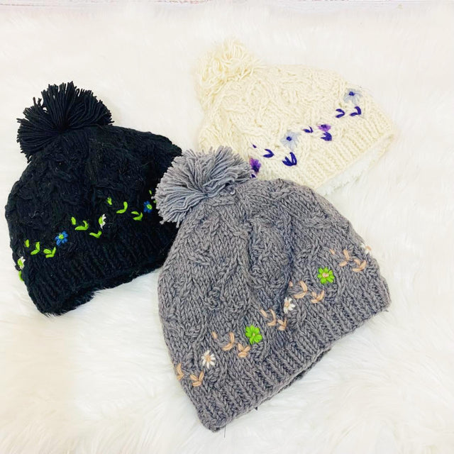 Hand Embroidered Woolen Bobble Hat