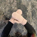 Knit fabric keeps hands warm for outdoor activities during cold weather without adding bulk.