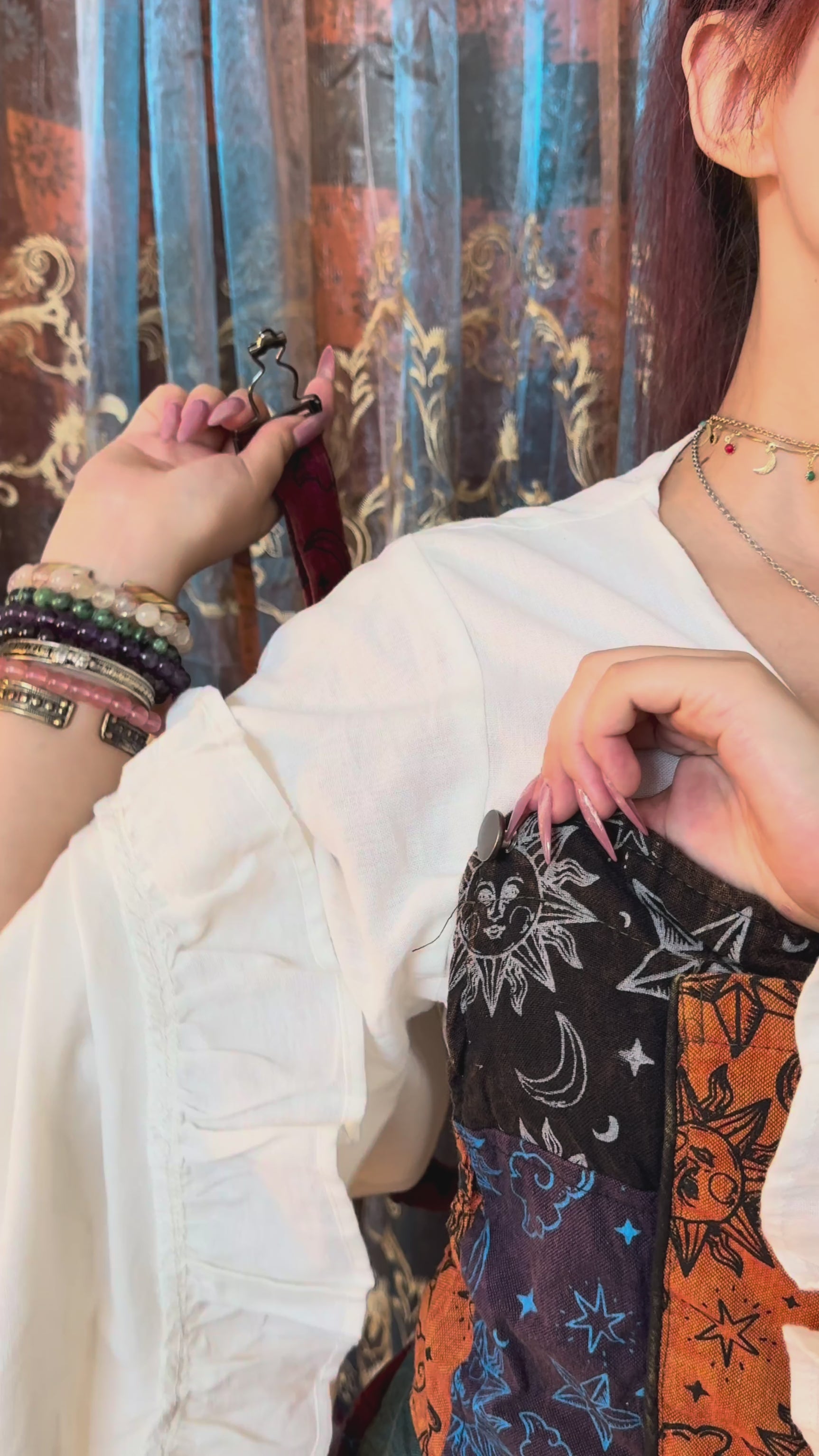✨ Handcrafted Elegance ✨Embrace the whimsical charm of our handmade hippie overalls. This romper features a patchwork design inspired by celestial motifs, perfect for festival clothing. It's a unique piece that combines boho and fairycore styles. Ideal for those who love cottage core outfits, it offers a playful yet elegant look.