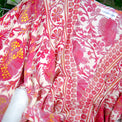 This long silk kimono, printed with bohemian-style paisley, is handmade and offers a beach-ready cover-up or cardigan for a light and stylish look. The perfect loungewear for spring, summer, and fall, has been hand dyed to match any outfit. With its versatile style, it goes with everything to make a timeless statement.