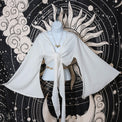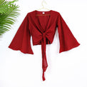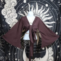 This handmade Solid Cotton Wrap Top is cut from bamboo cotton for a comfortable fit. It features a wrap design and three-way bell sleeves, ensuring a flattering and stylish look. The top is plus size inclusive, making it a versatile and dependable choice for any wardrobe. It's perfect for festival fashion lovers who have a fairy-core aesthetic.