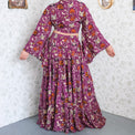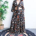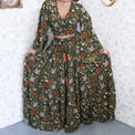 The flowy tiered maxi skirt comes with hidden pockets for ultimate practicality and features a comfortable elastic waistband for the perfect fit. The tie-front wrap crop top with wide bell sleeves adds a whimsical, romantic touch to your look. Crafted from soft, breathable fabric, this set is perfect for music festivals, Halloween parties, moon rituals, yoga retreats, photoshoots, and everydaygoddess vibes.