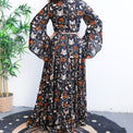 Embrace the magic of the night with our Witchy Whimsical Two-Piece Skirt & Wrap Top Set featuring an enchanting celestial print adorned with cats, bats, crescent moons, stars, and mystical florals. Designed for boho babes, festival queens, witchcore lovers, and free spirits, this dreamy co-ord set combines comfort, style, and magic in one statement outfit.