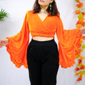 Velvet Boho Wrap Top with Ruffle Sleeve