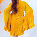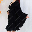 Crafted from velvet, this mini wrap dress exudes retro glamour with its whimsical ruffle sleeve and boho style. The stretchy fabric offers a comfortable and flattering fit, making it the perfect addition to your witchy outfit. Embrace the cute bohemian style of this dress for a trendy look.