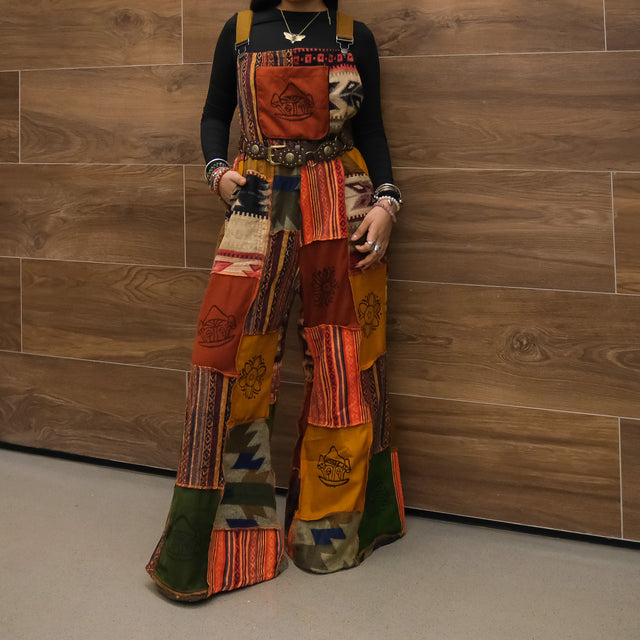 Patchwork Corduroy Jumpsuit with Bell Bottom