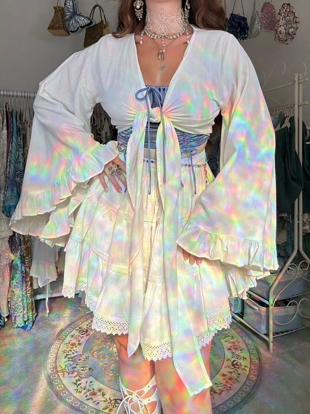 Flowy Tiered Mushroom Celestial Skirt with Bell Sleeve Wrap Top