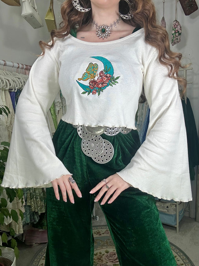 Whimsigoth Celestial Butterfly Hand Embroidered Sweater