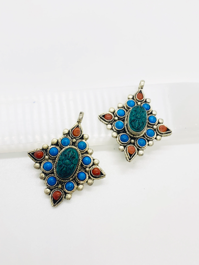 Vajra Box Pendant, Silver Prayer Box Necklaces, Turquoise Coral Pendant, Himalayan Jewelry