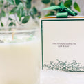This hand-puffed soy candle, scented with pine, clove, and sandalwood, comes with an aventurine crystal. Aventurine is a stone of good luck, protection, and prosperity, making this candle a perfect present for housewarmings and other special occasions. The candle arrives in a container.