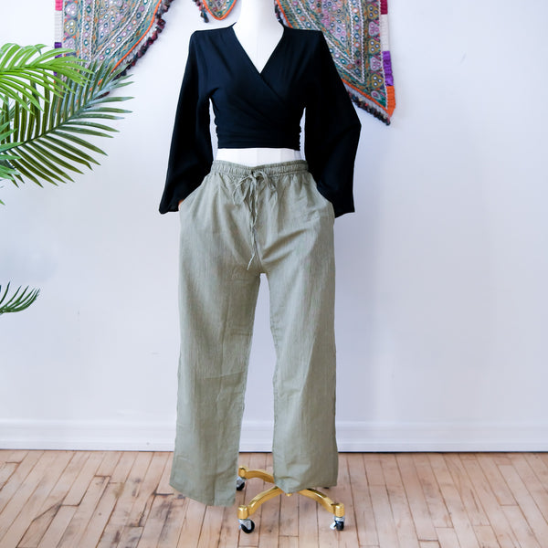 Our Straight Leg Pant offers a free size fit, perfect for any figure. Featuring a cotton fabric and lightweight construction, with an adjustable waistband and striped design, for added comfort and contemporary style. Elasticized wrists add to the convenience and versatility of our pants, providing the right fit for any occasion.