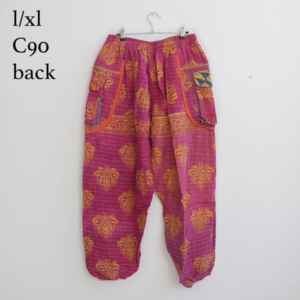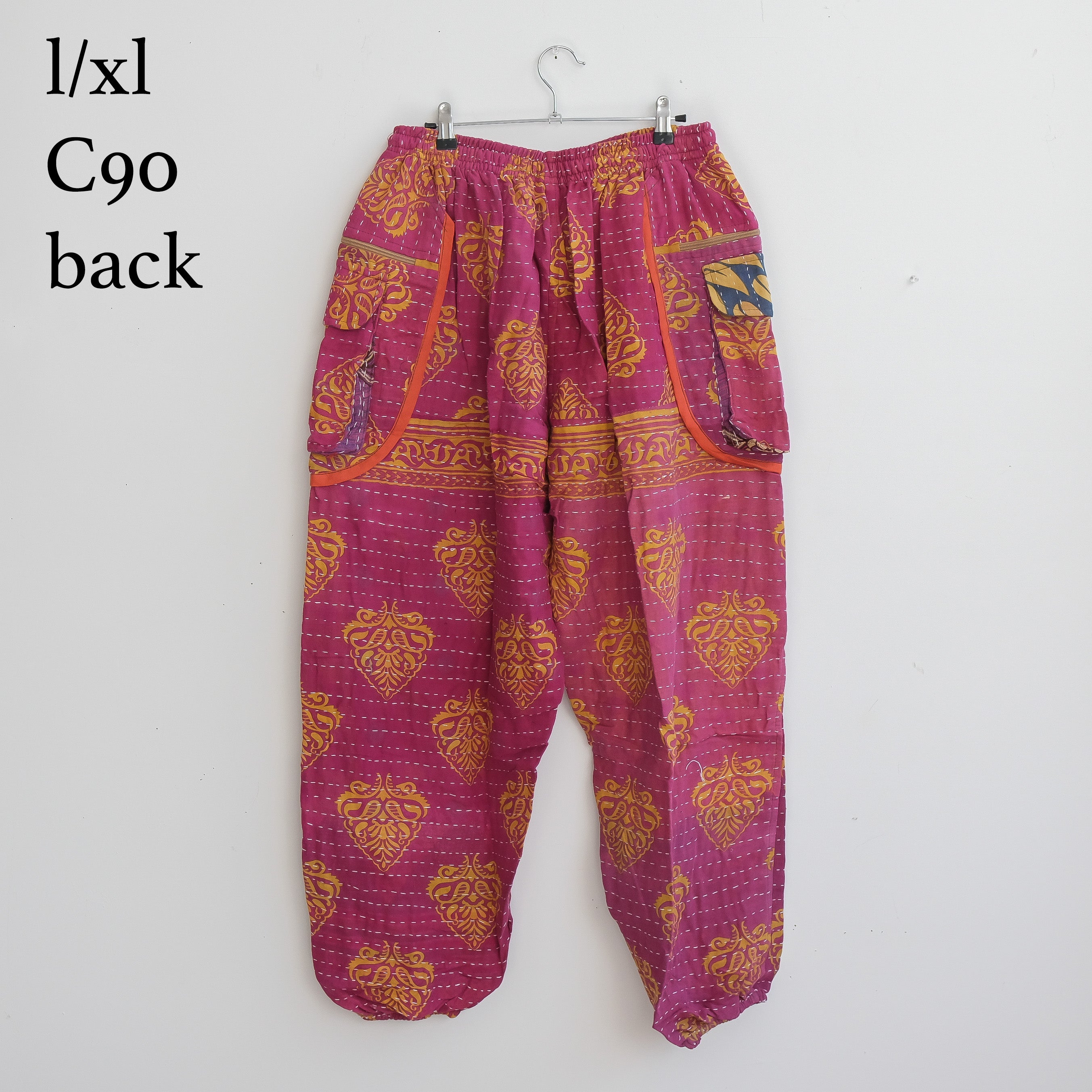 Discover the perfect blend of style and sustainability with the handmade upcycled fabric joggers. These unisex hippie cotton trousers are designed for comfort and versatility, making them a great addition to your wardrobe.