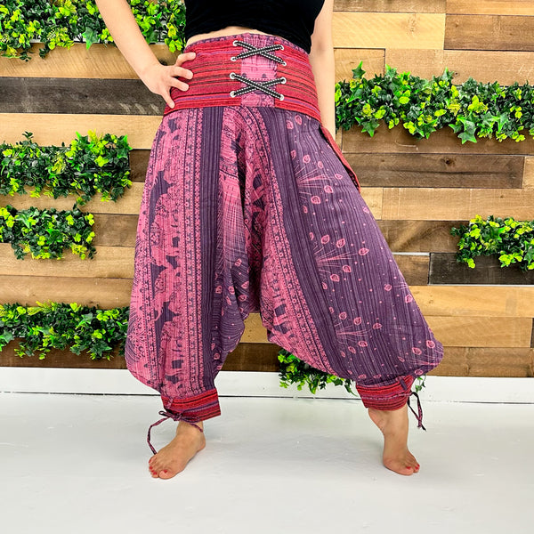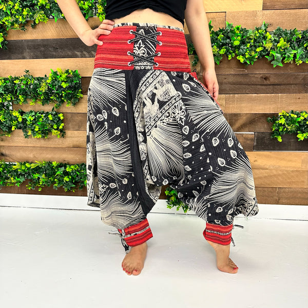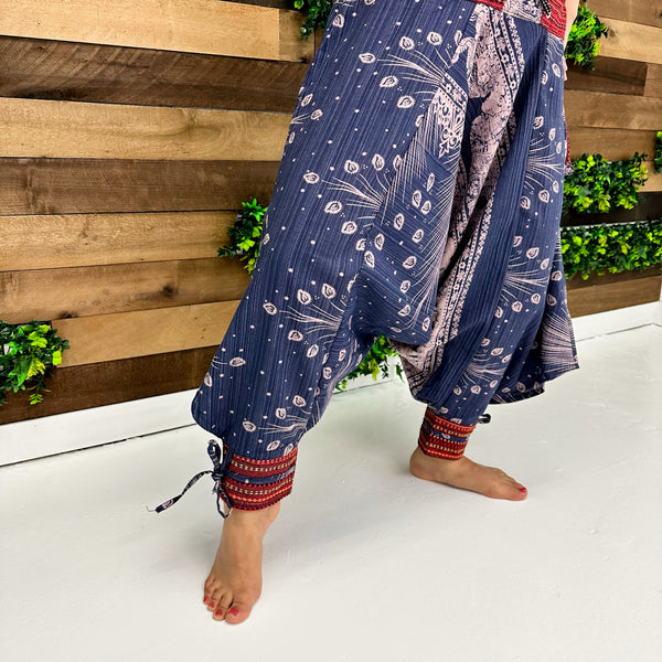 Unisex Cotton Harem Pants with Ankle Straps