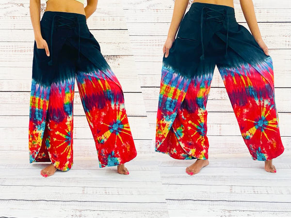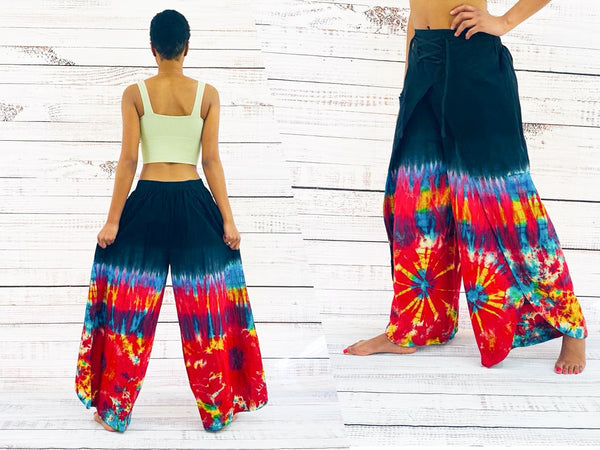 These Tie Dye Double Layer Cotton Palazzo Pants feature a unique, hand-dyed design. Crafted with a double layer of cotton for extra durability that is perfect for a festival or everyday wear. The wide-leg palazzo trousers offer a chic, boho look that is perfect for creating a stylish look.