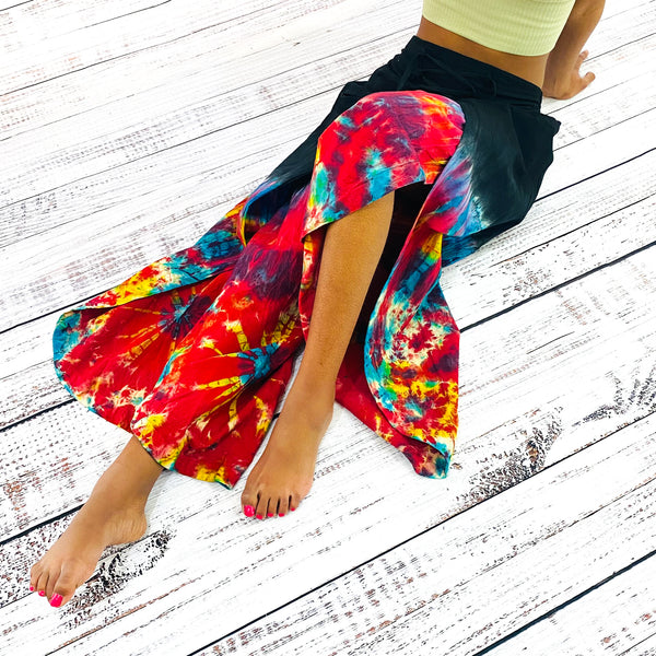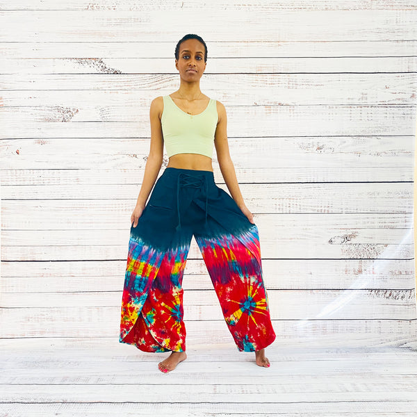These Tie Dye pants have been hand dyed in organic cotton and might be a little different.