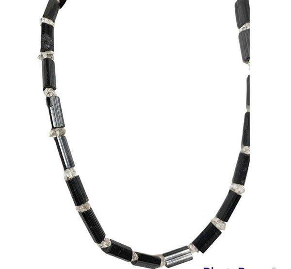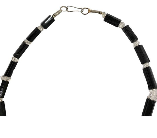 Raw Black Tourmaline Necklace with Herkimer Diamond