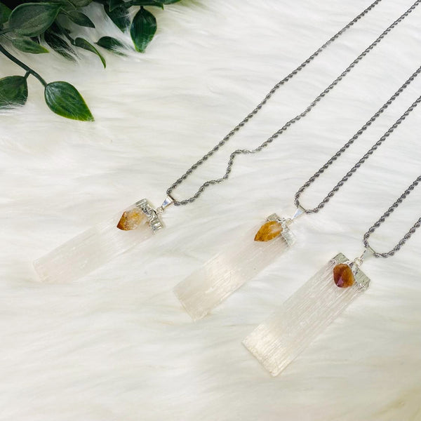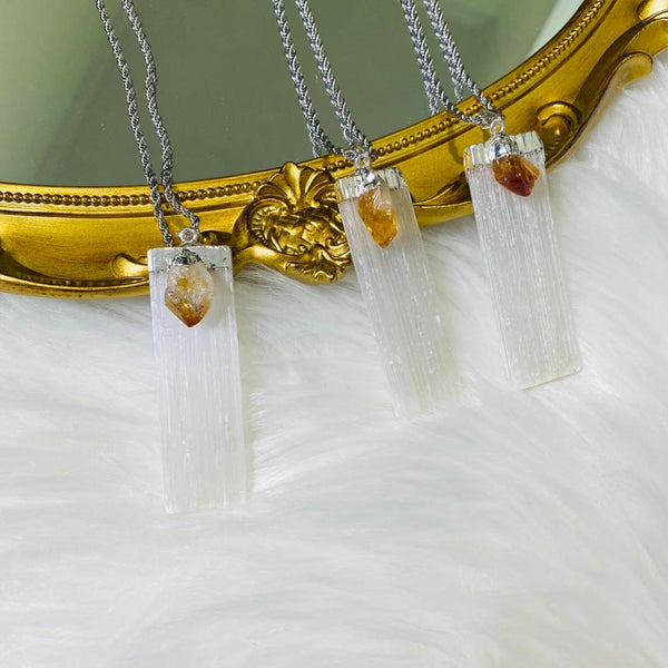 Selenite Crystal Pendant with Citrine, Stone for Cleansing and Wealth