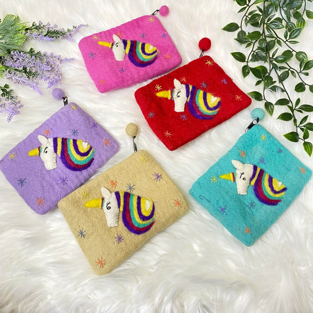 Colorful Unicorn Designed Felt Purse