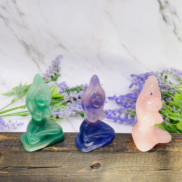 Mother Earth Crystal Statue, Gaia, 3 inches Mother Earth Altar Carvings, Mother Nature, Rose Quartz, Fluorite, Aventurine Gaia,Gift for Her