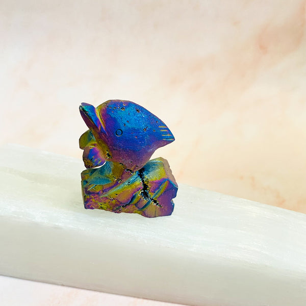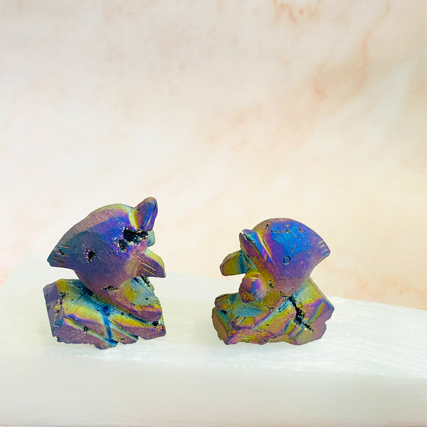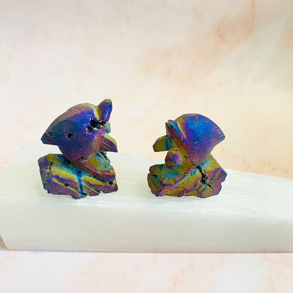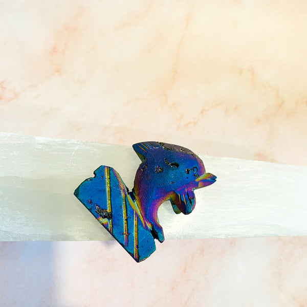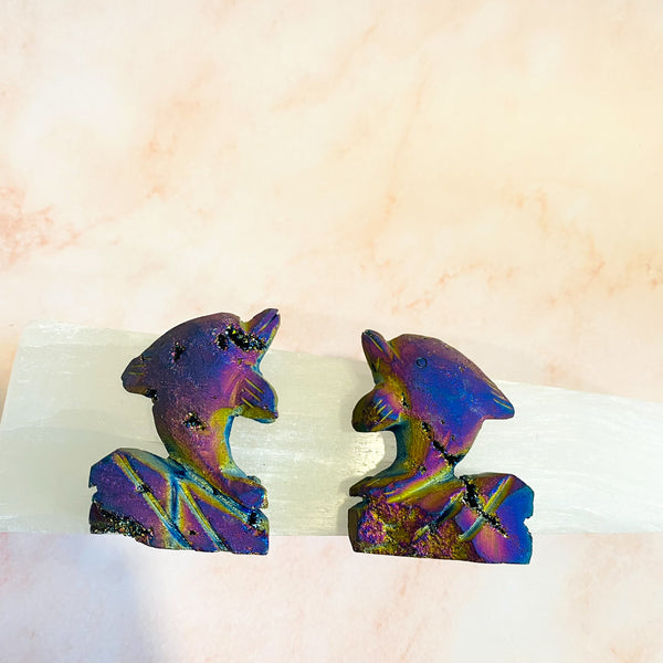 Rainbow Titanium Aura Quartz Dolphin, Crystal Carving, Crystal Decor, Raw Quartz Handmade Carvings, Reiki Healing, Crystal Gift