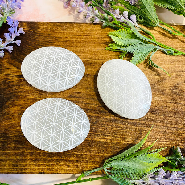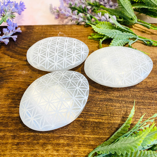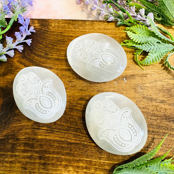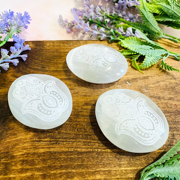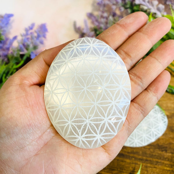 Selenite Palm stone, Satin Spar, Fatima Hand Selenite, Sacred Geometry Selenite Palm stone, Cleansing Crystal, Protection Stone
