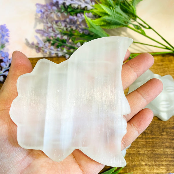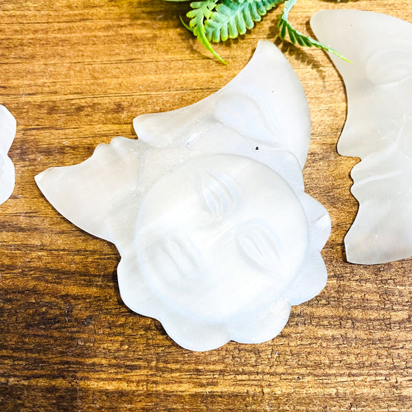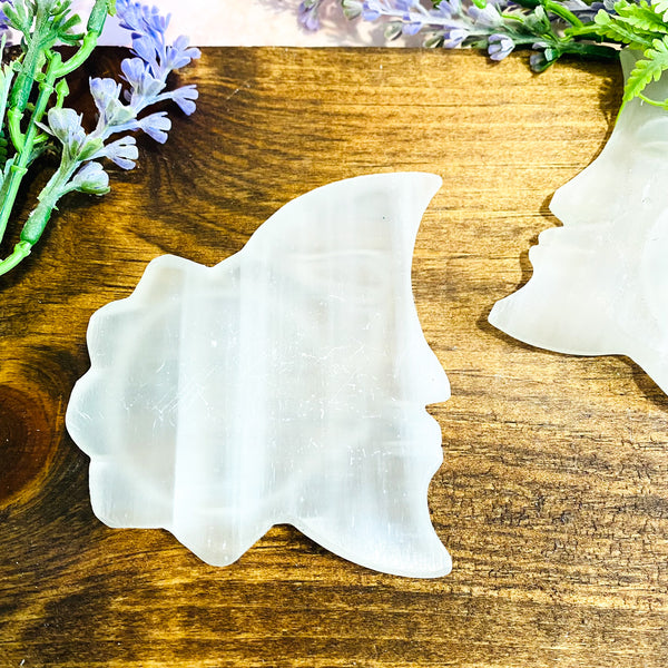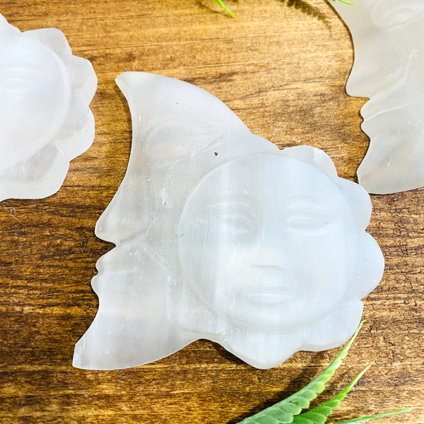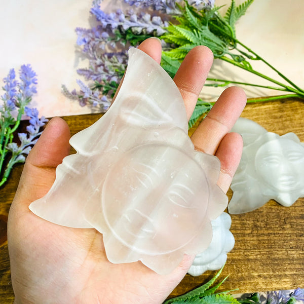 Selenite Sun & Moon Carving Charging, Cleansing Crystal, Hand Carved Selenite, Unique Selenite Decor, Satin Spar Moon , Crystal Moon Carving