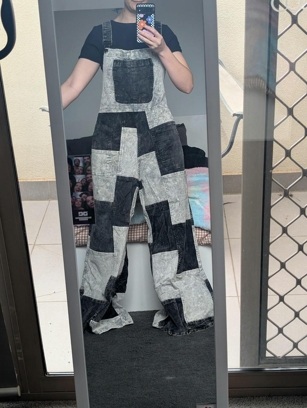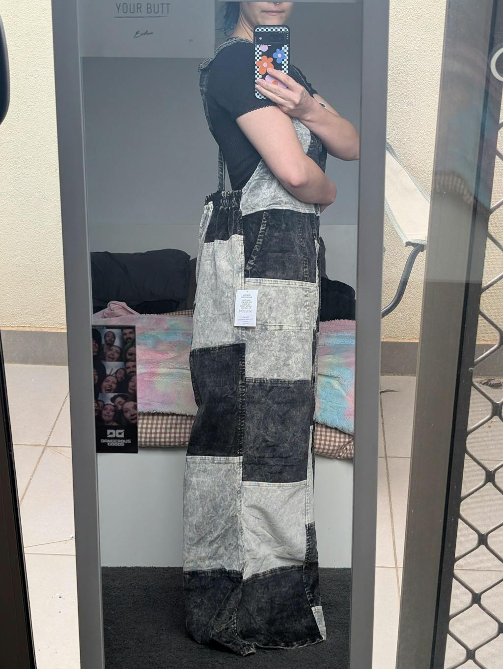 Patchwork Corduroy Jumpsuit with Bell Bottom