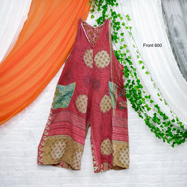 Kantha Wide Leg Boho Jumpsuit with Pockets