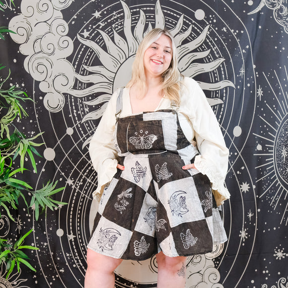 Patchwork Gothic Bib Wide Leg Jumpsuit