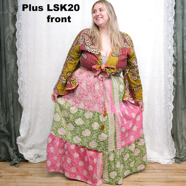 Kantha Flowy Plus Size Long Skirt with Pockets