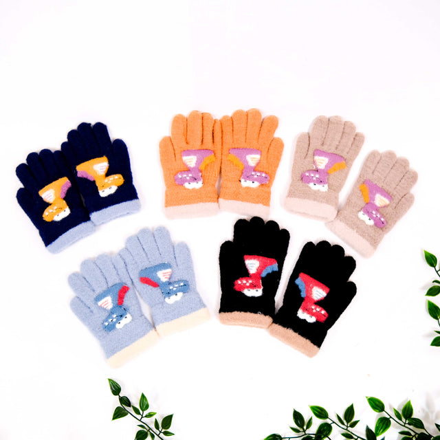 Fleece Lined Kids Handknit Gloves, Mittens for 4 to 8 years Old