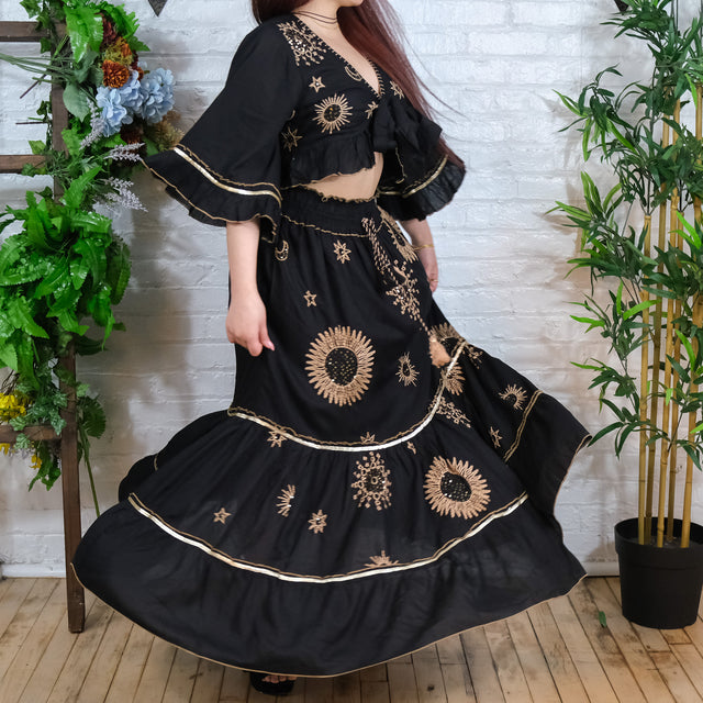 Velvet Boho Flowy Embroidery Skirt and Top