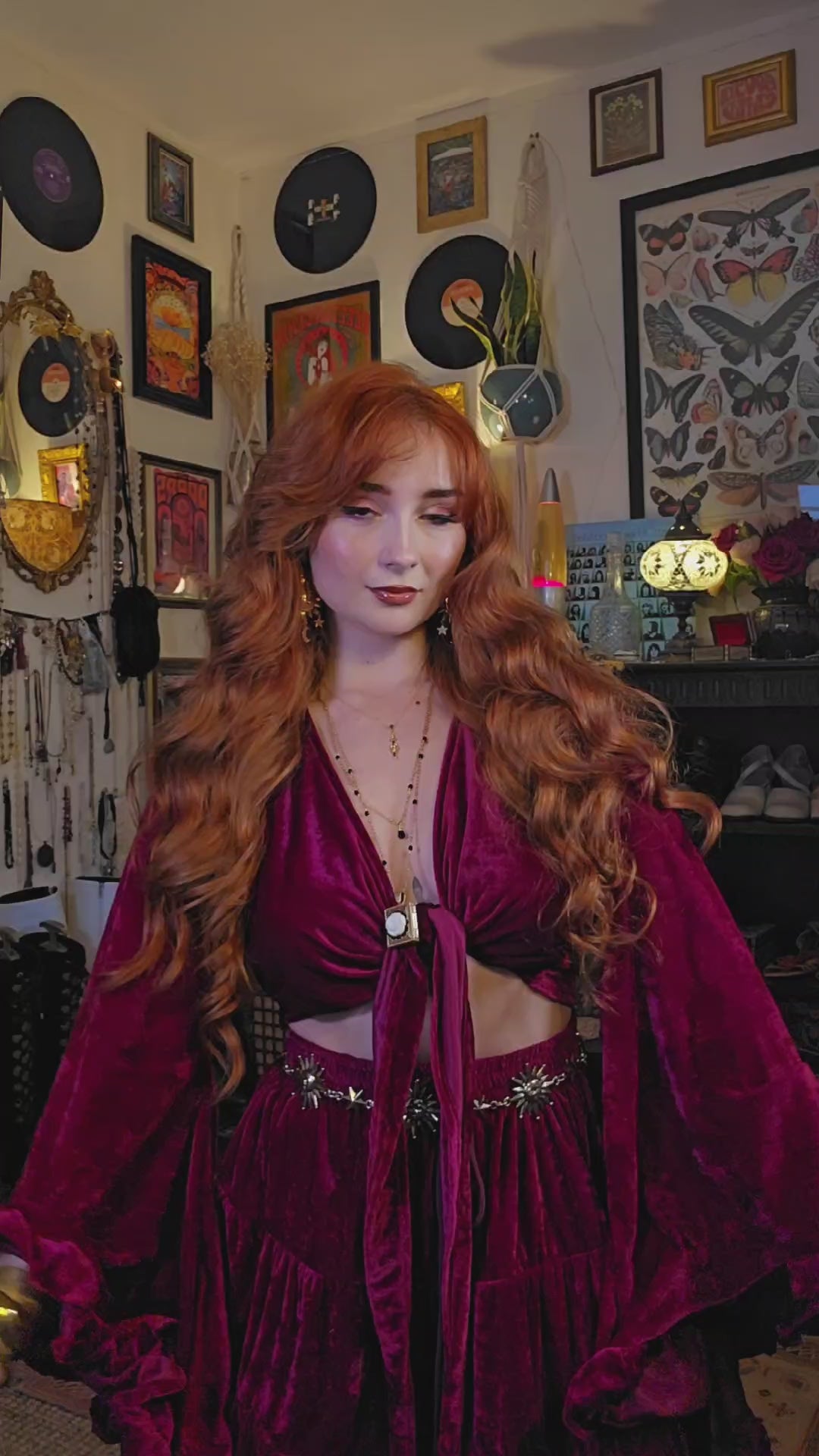 Bohemian Style Flowy Velvet Skirt Set with Ruffle Top