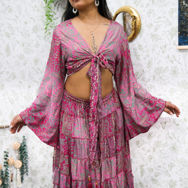 Ethereal Paisley Skirt with Ruffle Sleeve Top