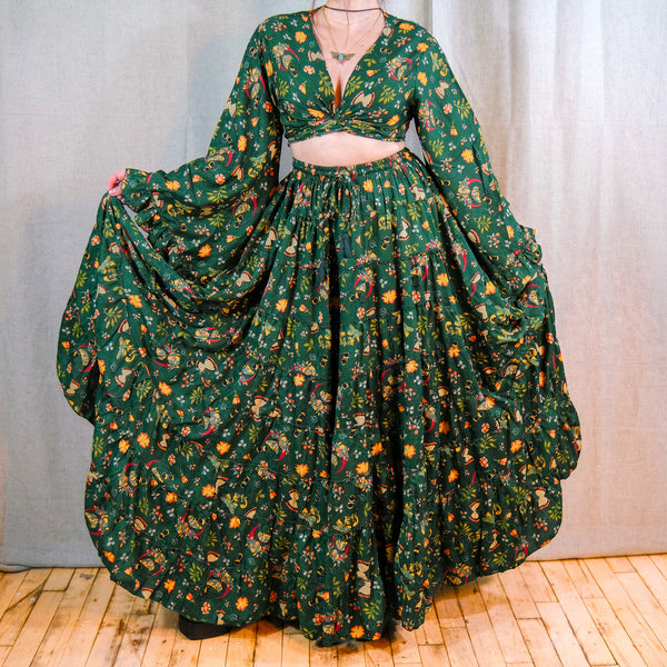 Forest Whisper Skirt with Ruffle Sleeve Top