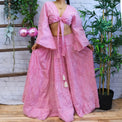 Make your fairytale moment last all day with this whimsical two-piece gingham set, handmade with love and designed for maximum twirl. Featuring a bell-sleeve top with dramatic flair and a full, tiered maxi skirt, this outfit is perfect for cottagecore queens, boho dreamers, and festival goers alike.