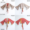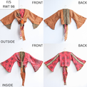 These tops can be worn in many ways. They can be worn open like a kimono, tied in a knot at the back or the front, or wrapped around the waist