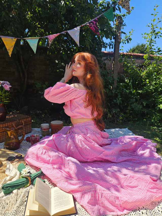 Flowy Tiered Mushroom Celestial Cotton Skirt Set