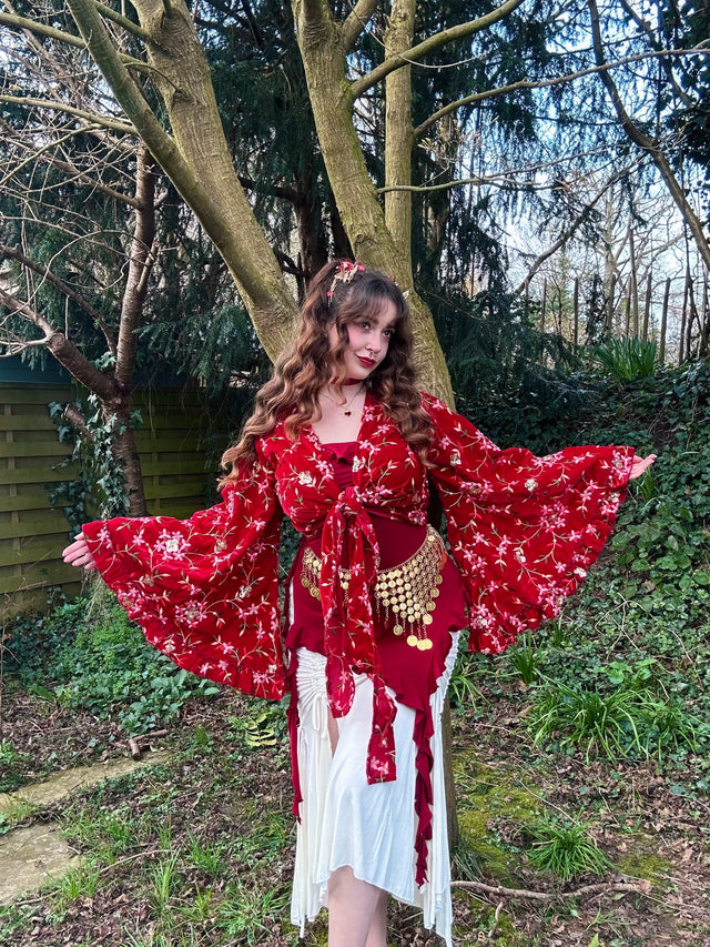 Emerald Whimsy Velvet Hand Embroidered Wrap Top