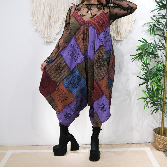 Patchwork Flowy Cotton Jumpsuit with Pockets