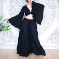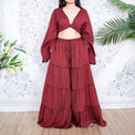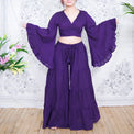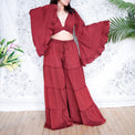 Elevate your wardrobe with our Flowy Tiered Cotton Pants. These handmade pants feature a wide leg design for a free-spirited, boho look. Paired with our ruffle sleeve top, this two piece set embodies a 90s-inspired, hippie aesthetic. Made for all sizes, these plus size inclusive pants bring a flowy, yoga-inspired feel to your style.