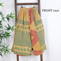 Kantha is a type of embroidery originating from the Indian subcontinent, specifically from the regions of Bangladesh and West Bengal in India. It is characterized by running stitches that are often used to repurpose old saris and fabrics into new unique and colorful pieces