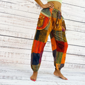 Elevate your style with these handmade, unisex Patchwork Harem Retro Style Pants with Multi Pockets. Featuring patchwork style, boho, and chic vintage fashion, these pants are perfect for any season. Turn heads with this eye-catching and unique look.