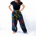 Expertly crafted with hand-dyed cotton fabric, these versatile pants offer a chic and bohemian touch to any outfit. Comfortable and lightweight, they feature an adjustable waist for a perfect fit. Perfect for yoga, lounging, or a boho-inspired look. Unisex style adds versatility to your wardrobe.