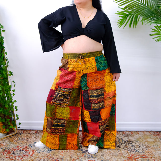 Patchwork Flowy Tiered Pant with Reversible Halter Top