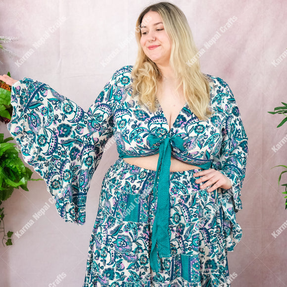 Flowy Cotton Tiered Skirt with Ruffle Sleeve Top
