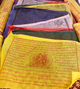Each flag features a large variety of prayers surrounding the center image of lungta, a Windhorse. Lungta is also the Tibetan word for 'prayer flag'.