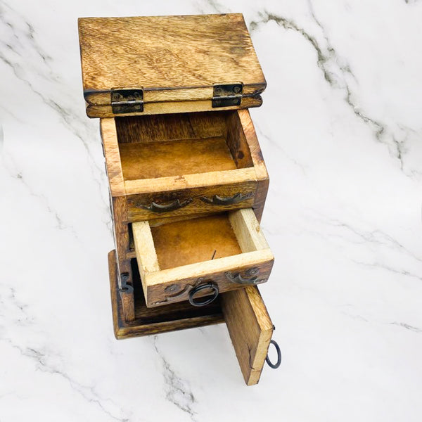 This hand carved wooden boxes has three compartments which will be perfect to store jewelry, crystals or can be used as secret boxes.