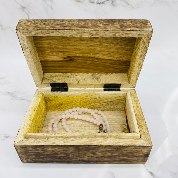 Our Hand Carved Wooden Jewelry Box is carefully crafted for exceptional beauty and durability. Ideal for keeping jewelry, crystal and herbs safe, this box is sure to add a touch of elegance to any home.