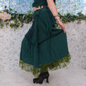 The layered wrap skirt features textured panels and a delicate lace trim along the bottom, creating movement and depth while adding a romantic, whimsical touch. Because the skirt is a wrap style, it includes adjustable popper buttons that allow you to wear it tighter or looser depending on your preferred fit.